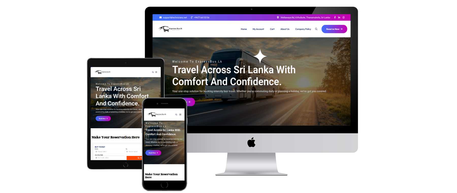 A modern online platform for express bus ticket booking in Sri Lanka. The website offers real-time seat reservation, secure online payments, and a user-friendly interface tailored for both desktop and mobile users.